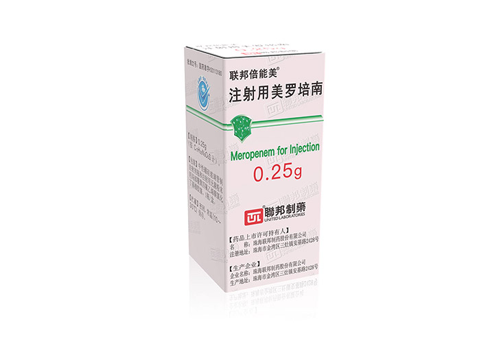 【适应症】美罗培南适用于成人和儿童由单一或多种对美罗培南敏感的细菌引起的感染:肺炎(包括院内获得性肺炎)、腹腔内感染、尿路感染、妇科感染(如子宫内膜炎和盆腔炎)、皮肤软组织感染、脑膜炎、败血症。经验性治疗,对于成人粒细胞减少症伴发热者,可单独应用本品或联合抗病毒药或抗真菌药使用。